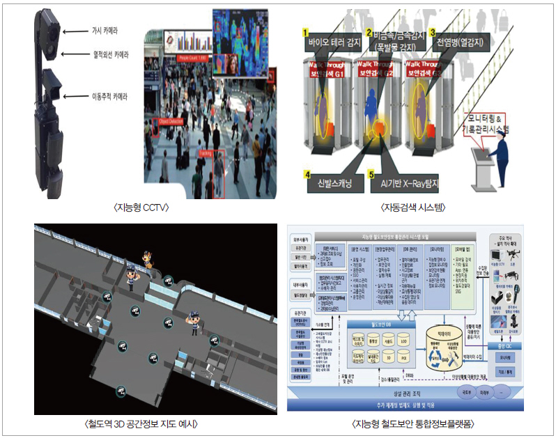 지능형 CCTV, 인공지능 등을 활용한 스마트 철도보안체계를 구축하여, 테러 등의 위험을 사전에 감지하여 대응하게 된다.