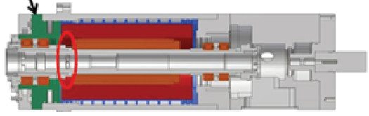 ▲ 한국폴리텍대학 관상팀이 개발한 빌트인 스핀들 내부 모습. 열전이 구간에 쿨링 슬리브가 장착돼 있다.