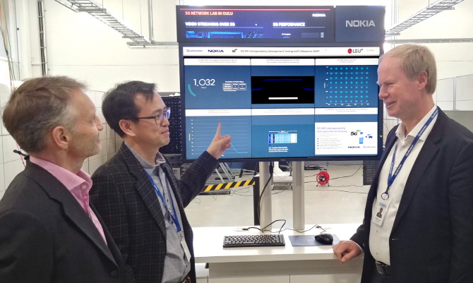 LG유플러스는 글로벌 장비 제조사인 노키아, 단말칩셋 제조사인 퀄컴과 함께 핀란드 노키아 본사에서 5G 국제 표준 기반의 데이터 통신 시연에 성공했다고 밝혔다.