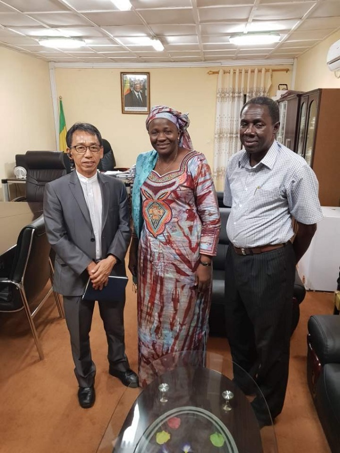 ▲ 말리 DNE 국가전력청장(사진 가운데)과 AMS T&C 관계자 그리고 세네갈전력 부청장이 태양광발전소 업무협약 후 기념촬영을 하고 있다.