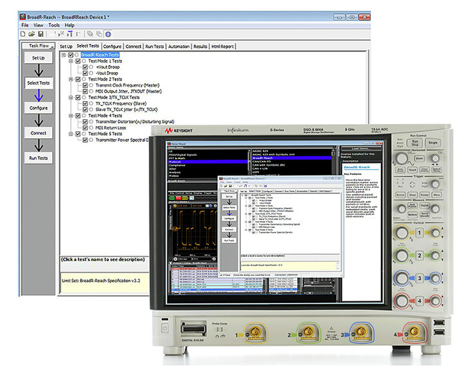 오토모티브 이더넷 적합성 솔루션은 BroadR-Reach V3.2, IEEE 802.3bw (100Base-T1) and IEEE 802.3bp (1000Base-T1) 설계에 대한 자동화된 적합성 테스트를 제공하고, E8740A 오토모티브 레이더 테스트 솔루션은 복잡한 테스트 설정, 초광대역 mmWave 측정 및 신호대잡음비(SNR) 손실에 관한 문제들을 해결한다.