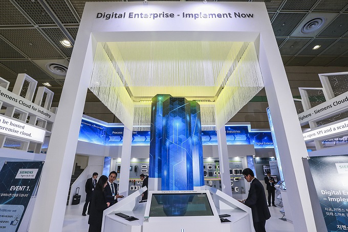 지멘스는 '디지털 엔터프라이즈 - 지금 시행하라(Digital Enterprise – Implement Now)'를 주제로 이산·조립산업, 공정산업 등 제조업 분야에 따른 고객 맞춤형 스마트공장 솔루션을 선보였다.