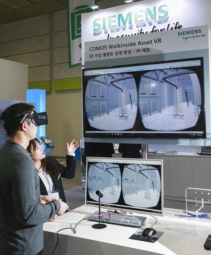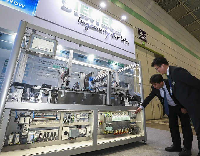 지멘스의 한국법인 지멘스는 28일부터 30일까지 3일간 서울 코엑스에서 개최되는 국내 최대 산업자동화 전문 전시회 '2018 스마트공장·자동화산업전(Smart Factory + Automation World)'에 참여 기업 중 가장 큰 규모로 참가했다.