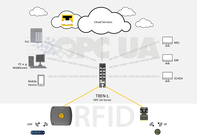 미들웨어, SCADA, ERP 또는 MES 솔루션과 통신하기 위해 RFID 인터페이스가 필요한 경우 사용자는 귀속된 독점 솔루션을 사용하거나 자체 프로그램을 개발해야 하지만, 표준 플랫폼인 OPC UA를 사용하면 이를 해결할 수 있다. OPC UA는 컨트롤러 및 IT 시스템과 통신하기 위한 표준 언어를 제공한다. 터크는 IP67 보호등급의 RFID 인터페이스인 TBEN-L4-RFID-OPC-UA에 직접 OPC UA 인터페이스를 통합했다.