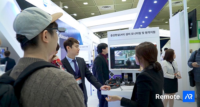 리모트 AR은 AR기술을 활용한 원격지원솔루션으로 현장 작업자는 원격으로 연결된 전문가에게 현장을 실시간으로 전송하고, 원격 전문가는 수신받은 현장의 영상을 보면서 포인터, 텍스트, 드로잉 등 리모트 AR 기능을 활용해 현장 해결을 위한 업무를 지원할 수 있다.