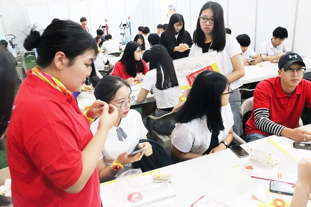 전시장 한 곳에서는 체험 행사가 열렸다. 요일별로 진행된 체험 행사는 ‘태양광 팔찌 만들기’, ‘하이브리드 태양광자동차 체험하기’, ‘에코백 만들기’ 등의 프로그램이 진행됐다. 취재를 갔을 때는 고등학생들이 저마다 재료를 받아 태양광 팔찌를 만들고 있었다. 페스티벌 안내 직원의 설명에 따라 팔찌를 만드는 학생들의 집중도는 상당히 높아 보였다.
