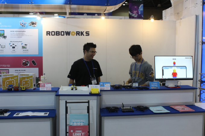 로보웍스가 10월 10일부터 13일까지 킨텍스에서 개최하는 ‘2018 로보월드’에 참가해 자사가 개발한 코딩 로봇 ‘큐브웍스 링키’를 선보였다.