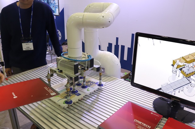 가장 큰 규모로 시연을 한 뉴로메카는 다양한 엔드 이펙터(End-effector·로봇이 작업할 때 작업 대상에 직접 작용하는 기능을 가진 부분)를 달고 제품을 조립하거나 식품 재료를 집어 이동하는 작업이 사람 근처에서 안전하게 진행될 수 있다는 점을 증명했다.