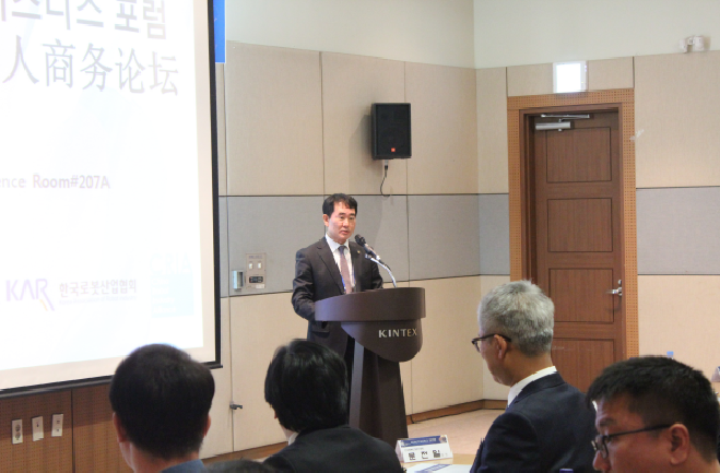 ▲비즈니스포럼 개회사를 발표하는 한국로봇산업진흥원 문전일 원장