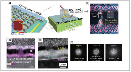 (c) 질화알루미늄 내부 형성된 인듐, 주석기반 나노 전류주입 경로의 투과전자현미경 사진