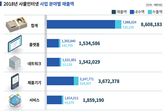 과학기술정보통신부(이하 과기정통부)는 2018년도 국내 사물인터넷 산업 현황을 담은 ’2018년도 사물인터넷 산업 실태조사‘ 결과를 발표했다.