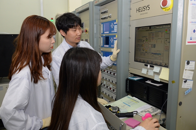 ▲ ETRI 연구진이 QLED 레이어를 증착 장비에서 공정을 진행하는 모습