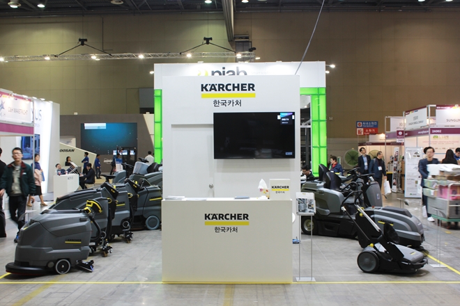 ▲카처가 전시회에 출품한 클리닝 장비 라인업