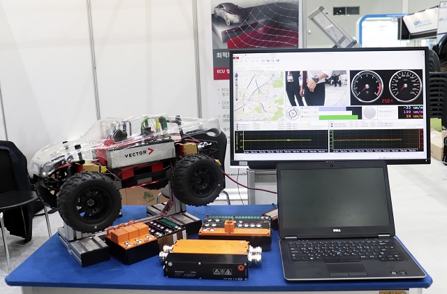 쉽게 말해 차량용 계측 솔루션이다. 차량에서 계측이라고 하면 기본으로 차량 캠퍼스 상에서 흘러 다니는 데이터들을 계측하는 게 기본이고, 추가로 ECU 내부 변속기를 모니터링을 하고 있다. 여기까지는 기존에 자동차 사업을 하는 곳에서 이미 하는 부분이다. 이번 전시회에서 우리가 보여주고자 하는 부분은 여기서 추가로 할 수 있는 것이다.