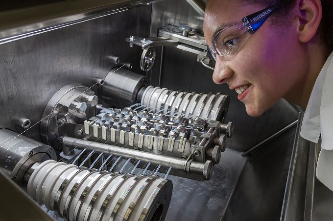 ▲ 헤레우스의 초극세 와이어 머신에서 드로잉 다이를 점검하는 모습