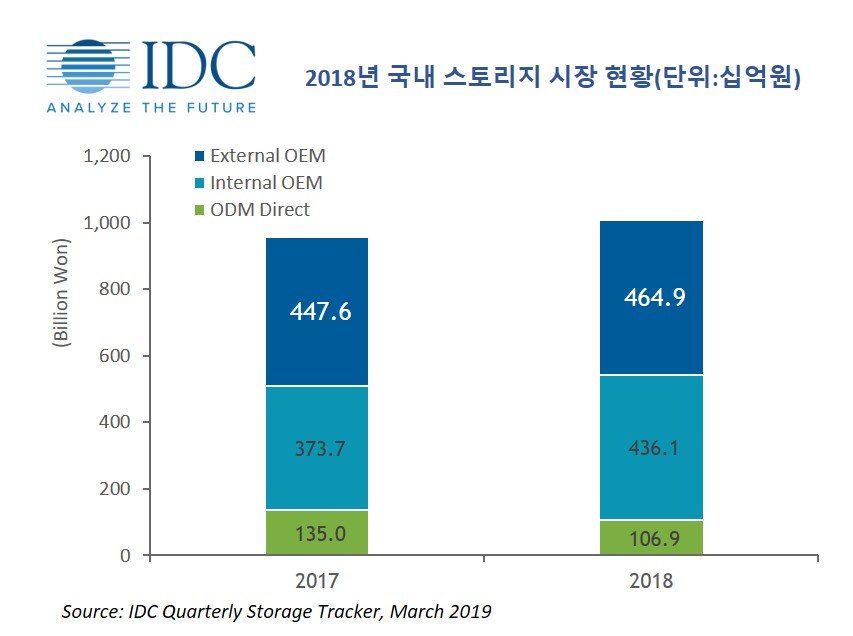 IT 시장분석 및 컨설팅 기관인 인터내셔날 데이터 코퍼레이션 코리아(International Data Corporation Korea, 이하 한국IDC)는 최근 발간한 2018년 국내 외장형 스토리지 시스템 시장 보고서에서 2018년 국내 외장형 스토리지 시스템 시장이 4천649억원 규모로 전년 대비 3.8% 성장 했다고 밝혔다.
