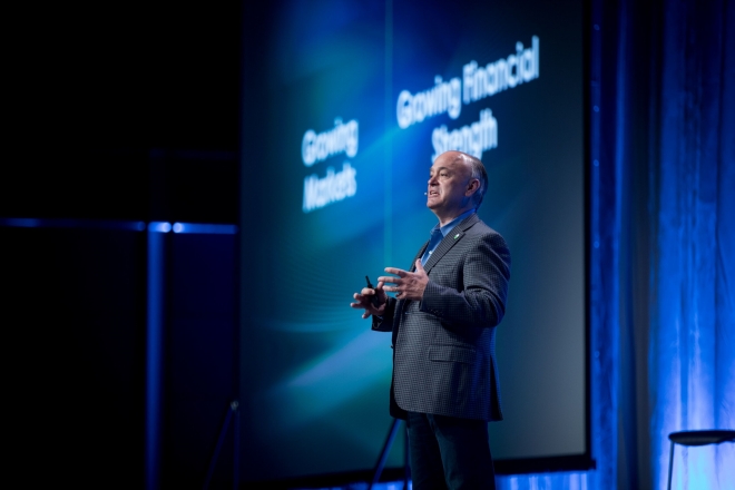 ▲PTC 짐 헤플만 CEO는 라이브웍스 기조강연에서 IoT, AR, CAD, PLM 기술이 노동력의 증강을 이끌 것이라고 말했다.