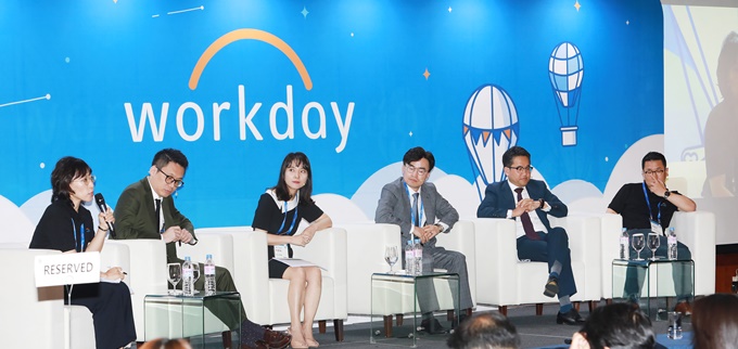 이후 이승희 워크데이코리아 밸류 매니저의 사회로 진행된 패널토론에서는 우형진 캐봇 마이크로일렉트로닉스 아태지역 인사디렉터, 이현희 IBM인사전무, 정지영 머서코리아 부사장, 김성진 딜로이트 상무, 엄창섭 워크데이 서비스 디렉터가 참석해 디지털 트랜스포메이션 과정에서의 어려움을 극복하고 프로젝트 성공을 위한 전략을 제시했다.