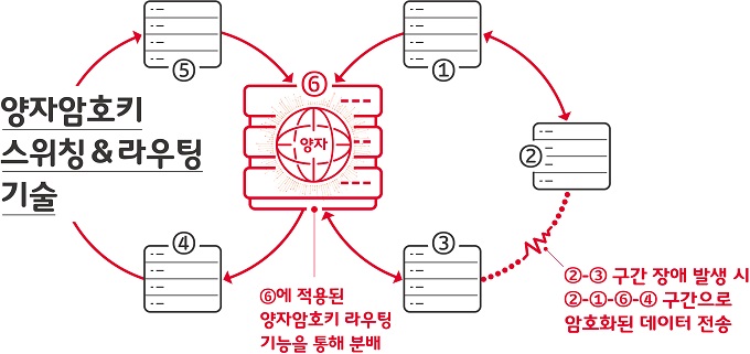 SK텔레콤은 이번 과제를 통해 양자암호키 '스위칭' 기술을 개발했다. 스위칭 기술은 한쪽 통신망에 장애가 발생 시 다른 방향으로 양자암호키를 전송하는 기술이다.