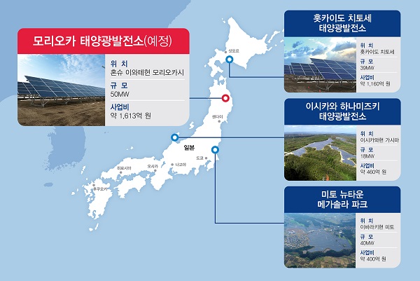 모리오카 태양광발전소는 2019년 7월 착공해 오는 2021년 9월까지 약 125만㎡ 부지에 50MW 규모 태양광발전소를 건설하고, 향후 PPA(전력판매계약)를 체결한 토호쿠전력에 약 1만 6천여 가구가 사용할 수 있는 전기를 생산, 공급하게 된다.