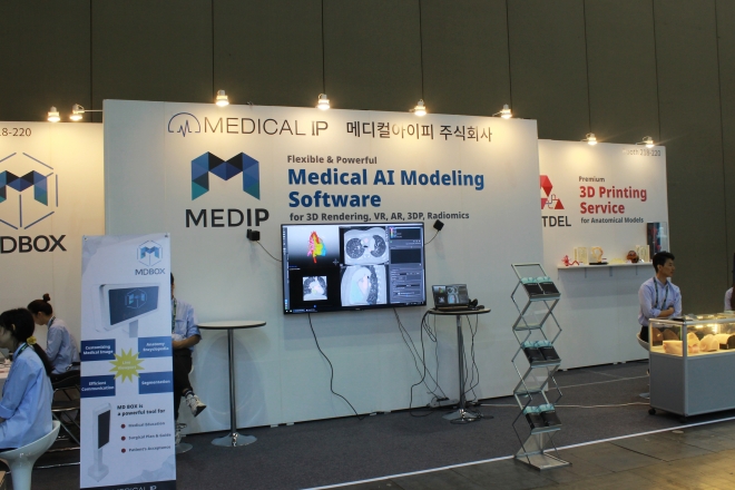 메디컬아이피는 이번 전시회에 참가해 3D모델링 서비스인 '메딥(MEDIP)'과 3D프린팅 서비스인 '아낫델(ANATDEL)'을 공개했다.