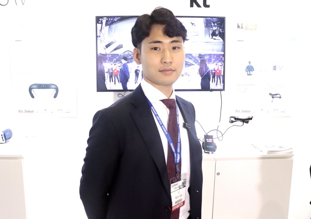 ▲ 목진수 KT 대리는 웨어러블 넥밴드는 세계 최초 5G 기반으로 작동하는 360도 넥밴드라고 소개했다. <사진 : 김동원 기자>