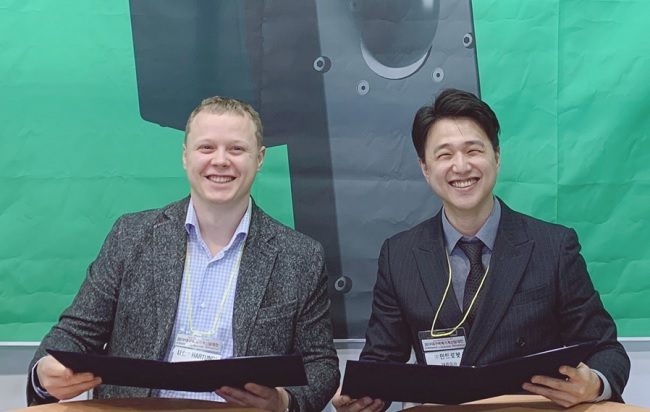(하르퉁 Dmitry Gartung 최고경영자(왼쪽)와 민트로봇 강형석 대표이사. 사진제공=민트로봇)