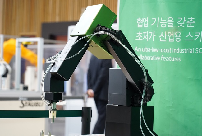 ▲ 대구 국제 로봇전(ROBEX2019) 에 전시된 민트로봇의 Pal-A6 산업용 로봇 (사진제공=민트로봇)