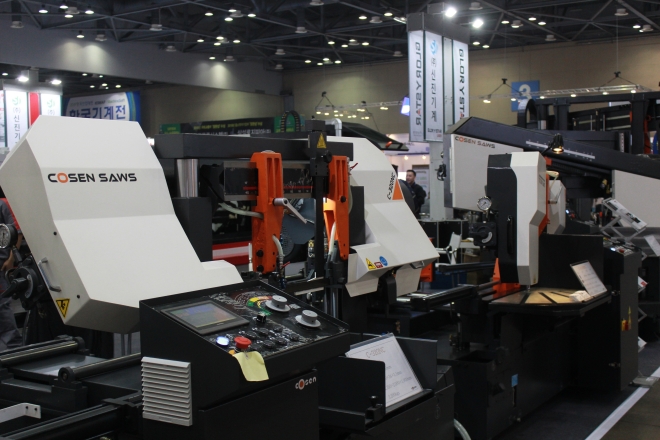 LCD터치스크린 방식이며, 톱날의 속도 및 수명, 바이스의 이동위치 표시기능이 내장돼있다. 또 다른 레이저 기업인 소코코리아는 전자동 파이프커팅기인 ‘SA-80CNC’를 공개했다. 이 장비는 2축 서보(이송 및 커팅) 제어로 정밀한 절단 공정을 보장하는 모델로, 최장 6200mm의 원본 파이프의 번들 로딩이 가능해 생산성을 향상시킨다.
