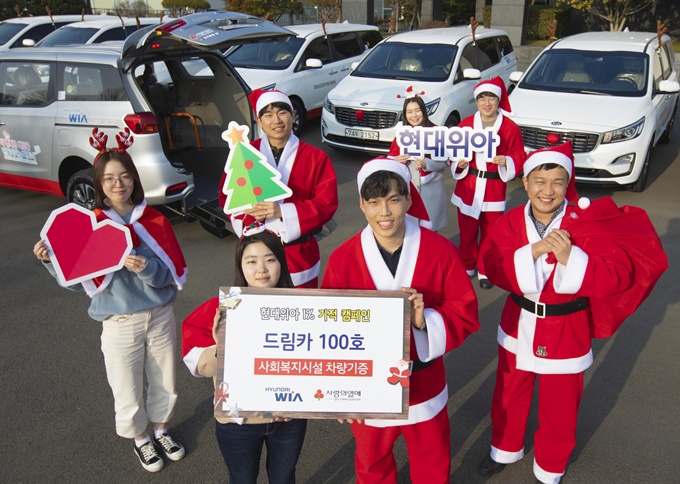 현대위아 임직원들이 성탄절을 맞아 월급을 모은 돈으로 전국 복지기관에 자동차를 선물했다.