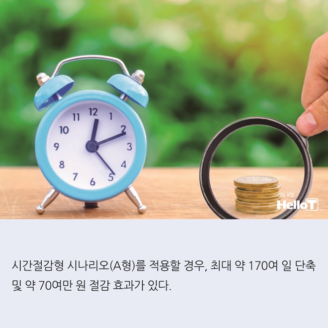 시간절감형 시나리오(A형)를 적용할 경우, 최대 약 170여 일 단축 및 약 70여만 원 절감 효과가 있다.