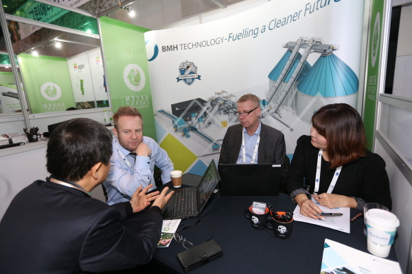 ▲ 지난해 열린 EU 그린에너지 전시상담회에서 유럽 기업과 한국 기업이 비즈니스 상담을 진행하고 있다.