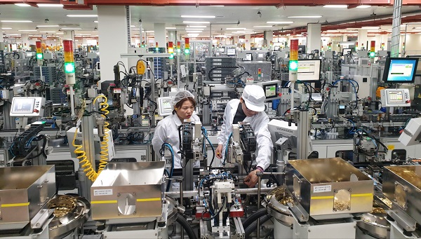 ▲ LS산전 관계자가 청주 스마트공장 생산라인을 점검하고 있는 모습