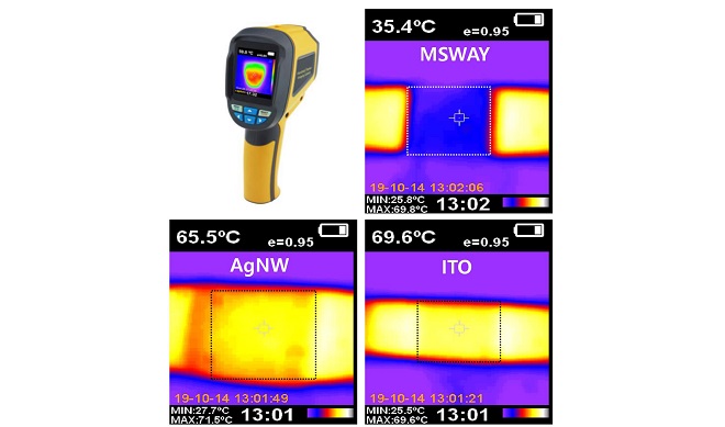 이번 제품은 엠에스웨이가 이미 개발한 유연 투명전극 나빌(NABIL)에 주로 사용된 금속인 은(Ag)이 원적외선을 차단하는 효과가 매우 높은 것에서 착안됐다.