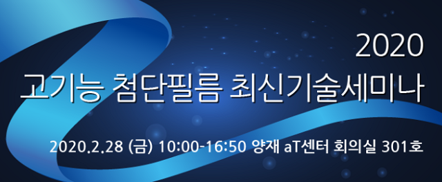 2월 28일(금)에 진행되는 이번 ‘2020 고기능 첨단필름 최신기술세미나’는 학계 및 업계 전문가 초청을 통해 ▲투명 창호형 에너지 하베스팅 고기능성 필름 ▲첨단산업에서 기능성 실리콘 소재와 응용 기술 ▲고기능 하이브리드 나노전극 필름 기술의 터치센서 및 자동차용 투명히터 응용 ▲최근 폴리이미드 소재 개발동향 ▲청색광 저감을 위한 탄소 양자점 필름 ▲고성능 은나노와이어 플렉서블 투명 전극 제조 및 광전자/센서 소자 응용과 같은 주제로 구성되어 진행된다.