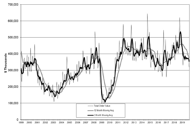 ▼ 2019년 11월 미국 공작기계 수주 현황 (Total U.S. Manufacturing Technology Orders Through November 2019)