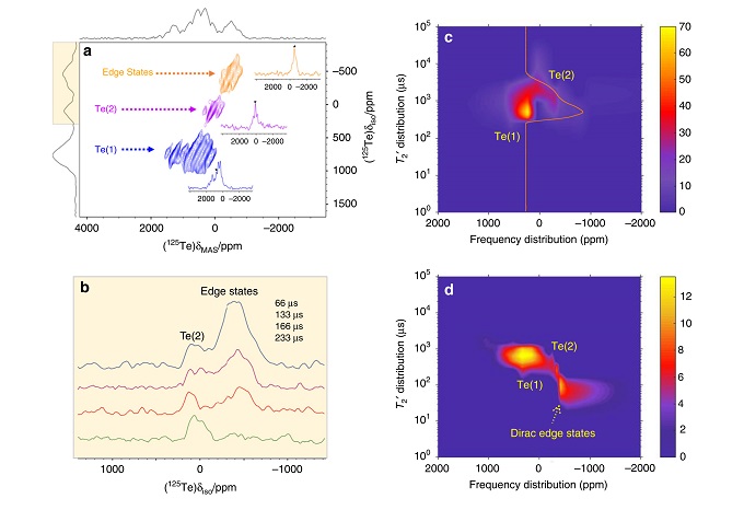 ▲NMR(핵자기공명분광기)로 분석한 위상절연체(비스무스-텔루라이드 구성원소 중 Te(텔루륨))의 분석 스펙트럼으로써 위상 절연체 표면 디락전자의 내부확산을 규명함 <사진 : 한국기초과학지원연구원>