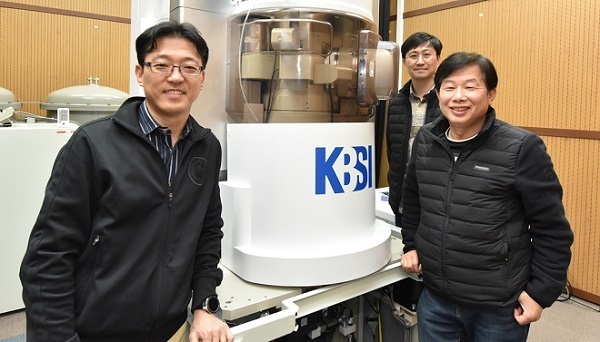 ▲KBSI 초고분해능 수차보정 투과전자현미경과 공동연구팀(연구장비운영부 장재혁 박사(왼쪽), 소재분석연구부 김해진 박사(오른쪽 앞), 연구장비개발부 이상철 박사(오른쪽 뒤)) <사진 : 한국기초과학지원연구원>