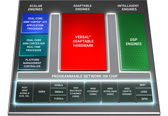 버설은 업계 최초의 적응형 컴퓨팅 가속화 플랫폼(ACAP: Adaptive Compute Acceleration Platform)으로, 기존 실리콘 아키텍처의 성능을 훨씬 능가하는 새로운 차원의 컴퓨팅 디바이스이다.