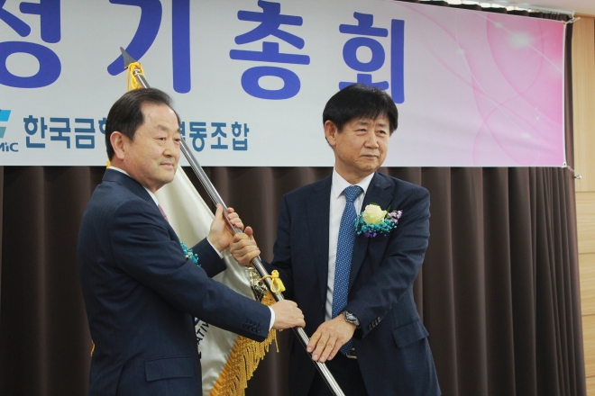 ▲신용문 14대 금형조합 신임 이사장(왼쪽), 박순황 13대 금형조합 이사장(오른쪽) (사진 : 서재창 기자)
