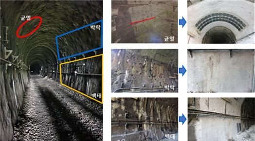 개발된 난연재료 패널과 고기능성 모르타르 제품은 지난해 11월, 철도 폐터널인 경기도 양평의 매월터널에 시험 시공하여, 구조물안전진단을 통한 안전등급 향상을 검증했다.