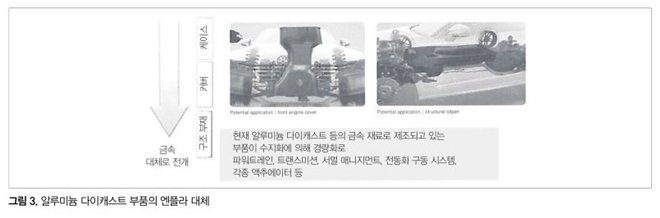 예전에 강판에서 알루미늄으로 시프트가 추진됨에 따라, 자동차의 중량은 1/3으로 경량화됐다. 그리고 현재 더욱 경량화를 추진하기 위해 동사에서는 알루미늄 다이캐스트 부품을 엔플라로 전환하는 것을 제안하고 있다.