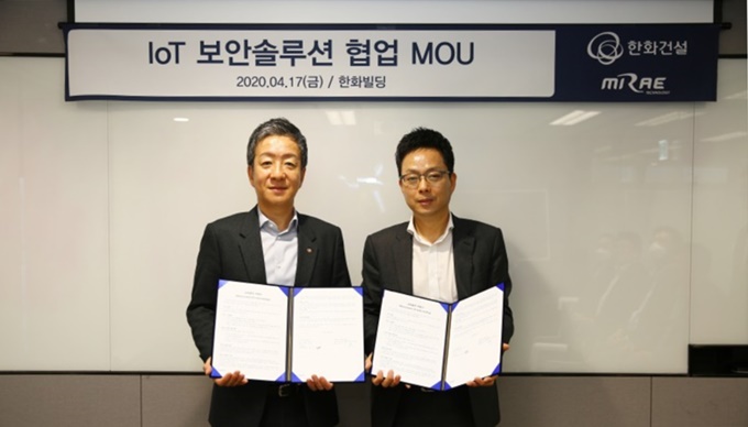 통합보안 솔루션 전문 기업인 미래테크놀로지가 한화건설과 사물인터넷(IoT) 보안 솔루션 협업을 위해 상호협력 의향서를 4월 17일 한화빌딩에서 체결했다고 7일 밝혔다.