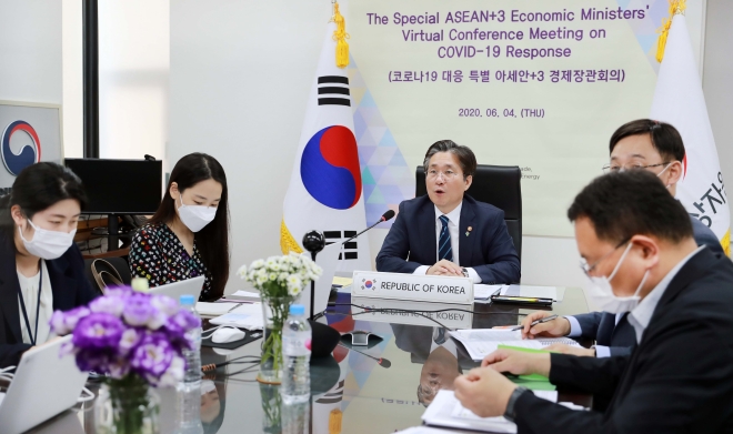산업통상자원부 성윤모 장관은 지난 4일(목) 개최된 '특별 아세안+3 경제장관 화상회의'에 참석해 코로나19 현황에 대해 의견을 공유하고, 경제적 영향을 최소화하기 위한 아세안+3 경제장관 공동성명 채택에 합의했다.
