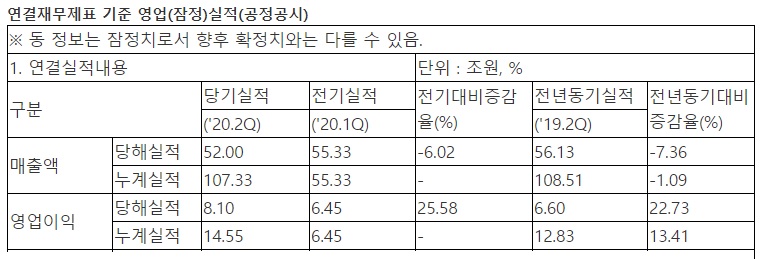 잠정 실적은 한국채택 국제회계기준(IFRS)에 의거해 추정한 결과이며, 아직 결산이 종료되지 않은 가운데 투자자들의 편의를 돕는 차원에서 제공되는 것이다.