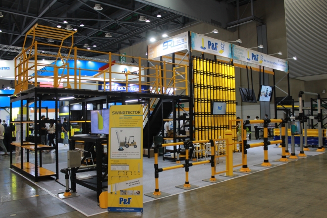 서림산업이 제10회 국제물류산업대전(이하 산업대전)에서 자사의 랙과 프로텍터 등을 선보였다.