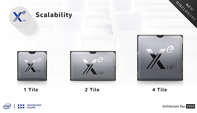 첫 Xe-HP 칩은 업계 최초의 멀티타일, 고확장성 및 고성능 아키텍처로 데이터센터 급, 랙 레벨 미디어 성능, GPU 확장성 및 인공지능 최적화 기능을 제공한다. Xe-HP는 멀티코어 GPU처럼 기능하는 1개, 2개 혹은 4개의 타일을 아우르는 동적 컴퓨팅 범위를 커버한다.