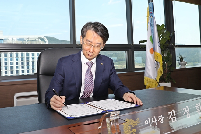 ▲협약서에 서명하는 산단공 김정환 이사장(출처 : 산단공)