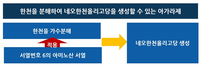 이번 기술은 네오한천올리고당을 생성할 수 있는 효소들을 연구하던 중 길비마리누스 아가로라이티쿠스 유래의 효소를 변형시켜 제조한 재조합 효소가 한천을 분해하여 높은 효율로 네오한천올리고당을 생성하는 것을 확인할 수 있다.