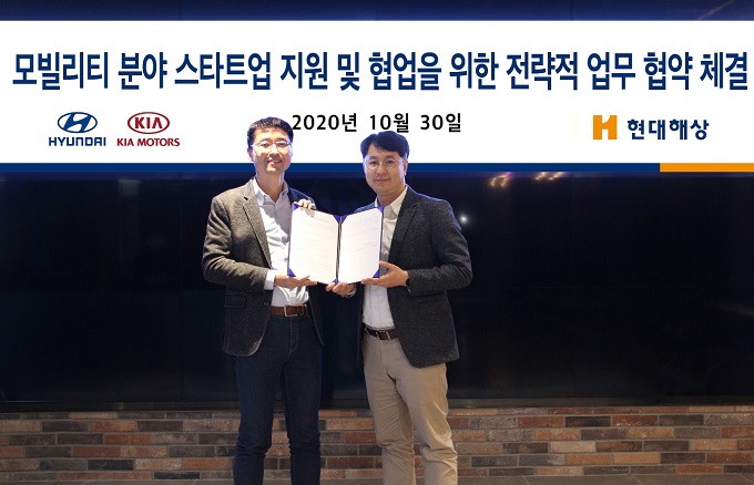 현대해상은 지난달 30일 현대·기아차와 모빌리티 분야 스타트업 지원 및 협업 방안 모색을 위한 업무협약을 체결했다고 2일 밝혔다.